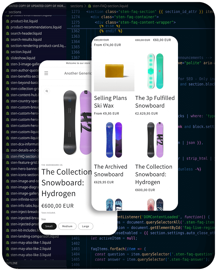 Modular, reusable components built in Liquid with full merchant control via schema settings. Control content, layouts, colors, and functionality directly from the theme editor. No developer needed for day-to-day changes.